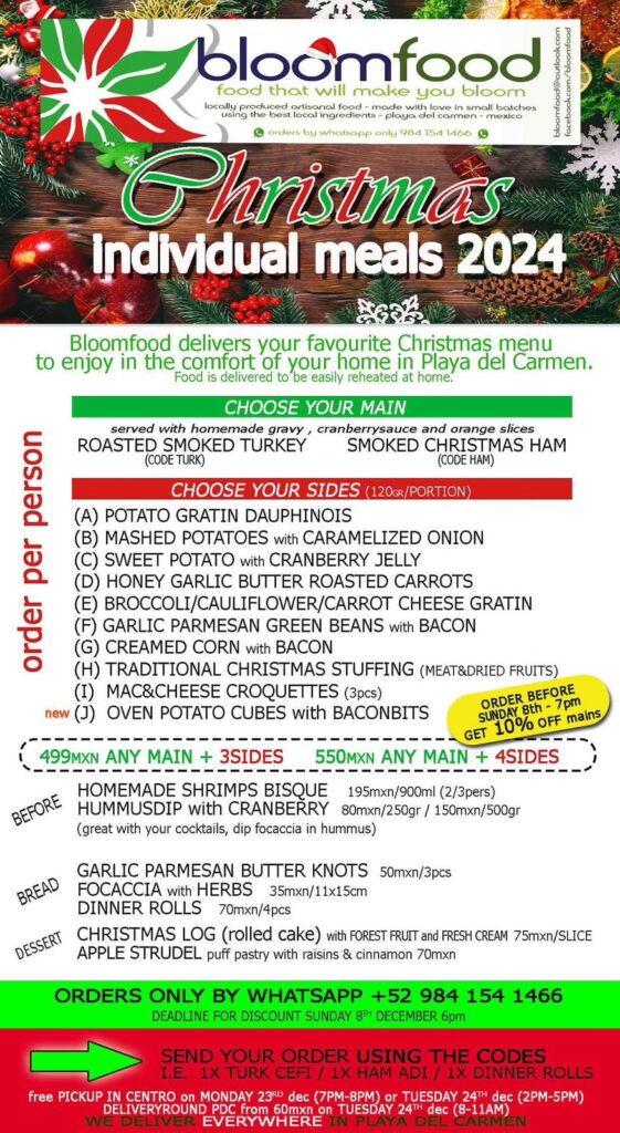 If you prefer to have your Christmas dinner at home, you can order delivery from Bloomfood, which offers a special Christmas menu.
